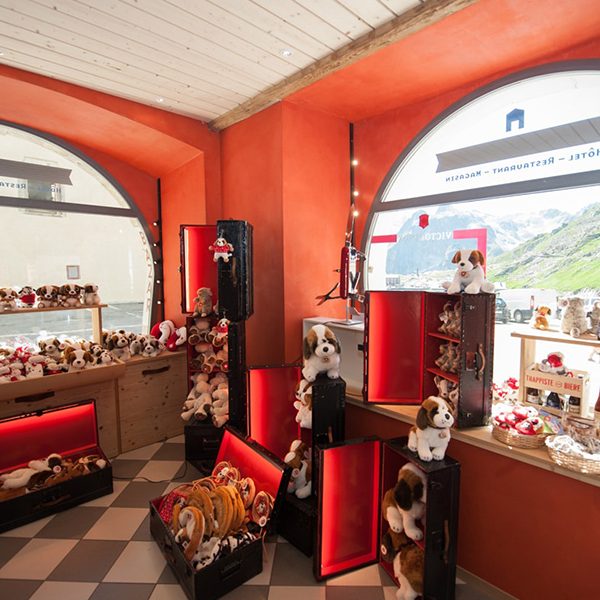 A quelques mètres à peine de la frontière, le magasin de l’Auberge présente le meilleur des produits made in Switzerland ! Vous y trouverez d’excellents chocolats, les fameux couteaux suisses, mais aussi des cartes postales, des T-shirts, des livres et des cartes de randonnée. Sans oublier le roi des souvenirs : les chiens Saint-Bernard en peluche, si doux à caresser !