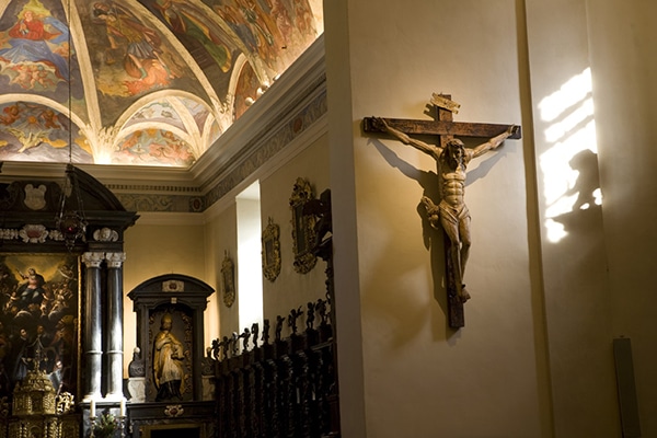 Juste en face de l’Auberge, la porte de l’Hospice est toujours ouverte : les Chanoines y perpétuent leur mission d’accueil depuis bientôt mille ans. L’église baroque est un lieu extraordinaire à cette altitude. Et le Trésor, tout juste rénové, présente des objets liturgiques flamboyants.